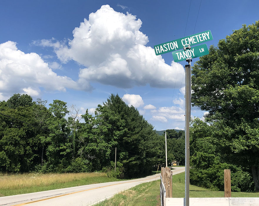 Previous Image Next Image 05a – HastonCemetery road sign 05a – Sign for road to the (Isaac T.) Haston Cemetery