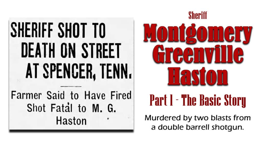 Links will be activated when the stories are posted. The Basic Story Newspaper Nuances The Murder’s Aftermath Who would have thought that this innocent-looking little boy would become the Sheriff of Van Buren County, TN, and be gunned down in such a horrific way? Montgomery Greenville Haston, born June 9, 1898, was the son ofContinue