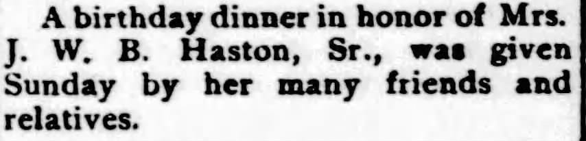 Thanks to the “now” online availability of many historical newspapers, we can learn interesting facts and stories about some of our Haston relatives, especially the ones who lived in communities where there were newspapers that have been digitized and become accessible through the Internet.
