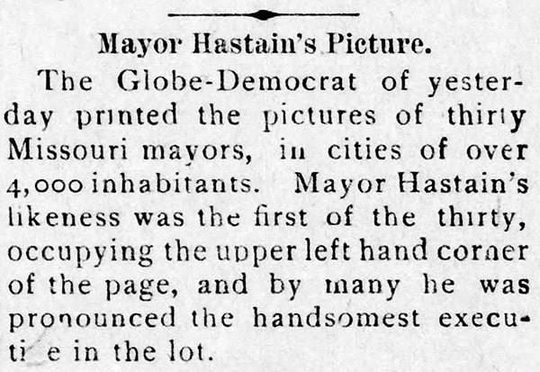 The Sedalia (MO) Democrat: Even the local Democrat newspaper seemed to agree that Republican Mayor P.D. Hastain was the handsomest mayor of Missouri’s 30 largest cities.