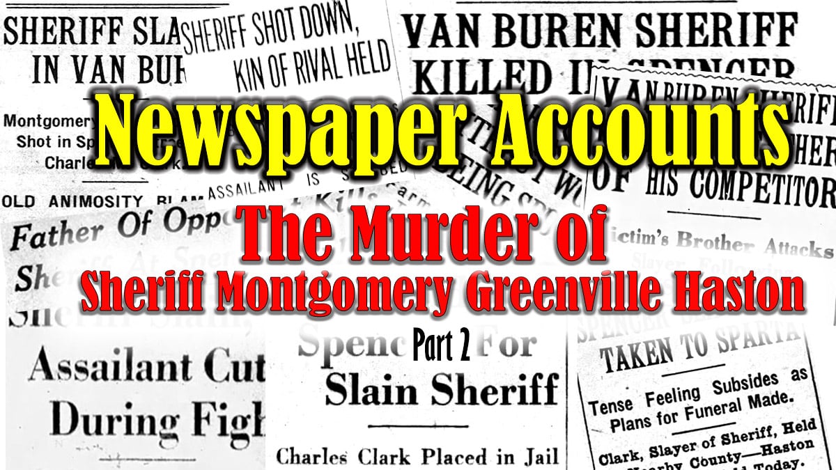Links will be activated when the stories are posted. The Basic Story Newspaper Nuances The Murder’s Aftermath I’ve been taught, and have taught others, that the stories we tell ourselves create emotions, and it is those emotions that sometimes drive us to reactions that we often later regret. Here is a classic example. Here areContinue reading “Murder of Sheriff Montgomery G. Haston – 2”